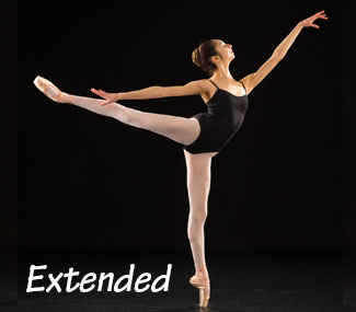 Performing a beautiful Arabesque en Pointe for audition is difficult. You have to get your feet, legs, torso, turnout, hips, hands, arms, head, and smile all in position when the photographer captures the image. What follows below is a discussion of the things we try to help you achieve with your Arabesque - DON'T fret about this in advance, we will work with you to do the best you can at your current level.